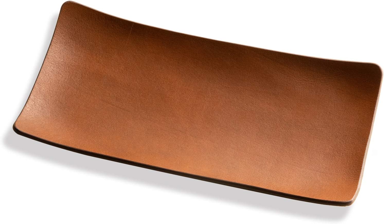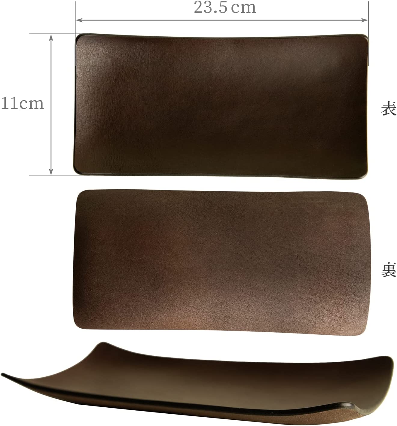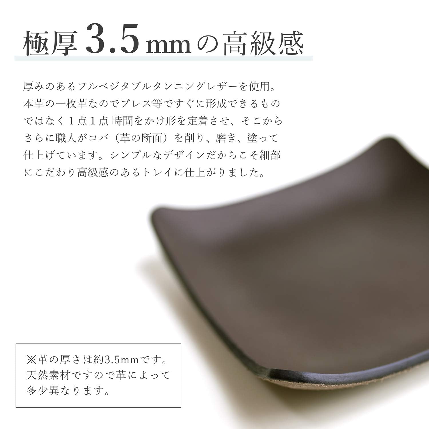 多く流通しているレザートレイは、革を縫い合わせたり、ボタンで端を留めるデザインのものが多くみられます。しかし、このレザートレイは革絞りという昔ながらの技法を使い、革1枚から立体的なデザインへと、時間と手間暇をかけて形作ります。他では見られない優雅な曲線美のデザインを可能にしました。シンプルなデザインながら素材の良さと丁寧な作りで、長く使っていただけるレザートレイです。
